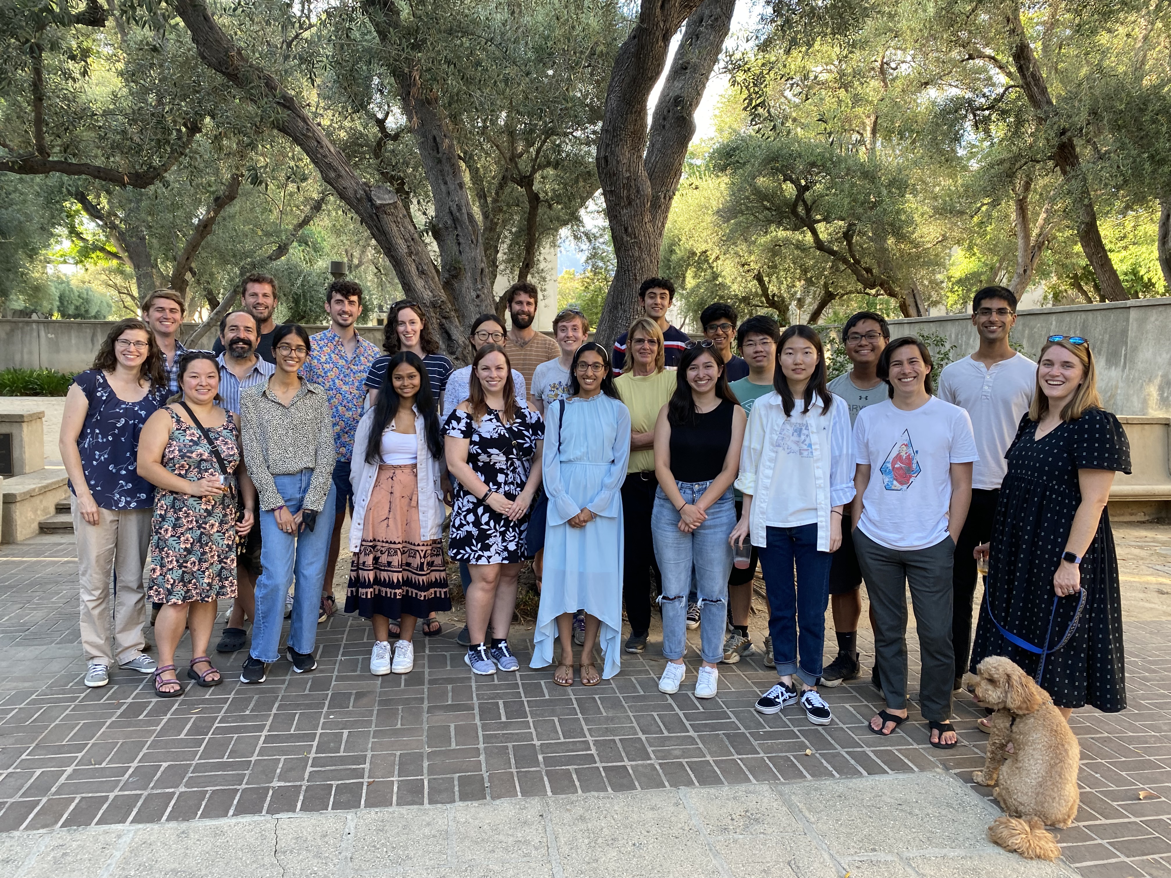 Group members and summer 2022 SURF students gathered for dinner in Dabney Gardens to celebrate this year's graduations and new positions.