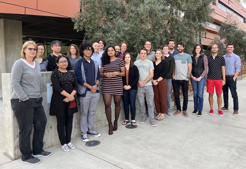 A large portion of the NuSTAR team gather in front of the Cahill Center for Astronomy and Astrophysics before a team meeting in November of 2021.